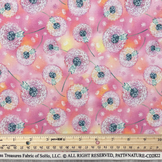 Dandelion Fabric - Pink - 100% Cotton - Timeless Treasures - Fanciful Fronds Collection