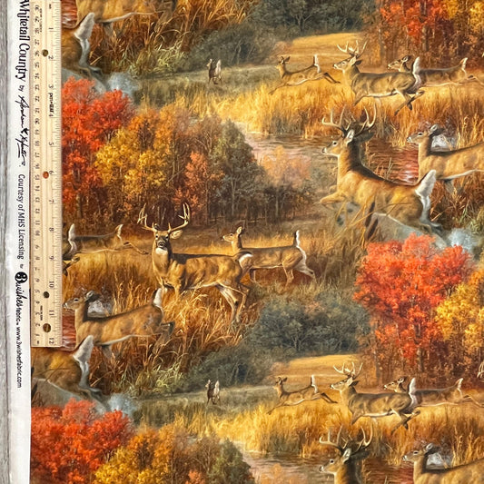 Frolicking Deer Fabric - 22202-MLT - 3 Wishes - 100% Cotton Fabric - Whitetail Country - Forest Animals