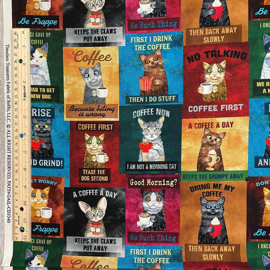 Coffee Cats Fabric - Timeless Treasures - 100% Cotton - Caffeine Cats - Cat Sayings