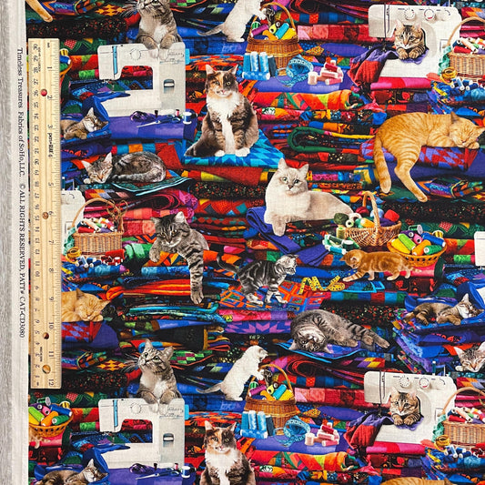 Cats on Quilts Fabric - Timeless Treasures - 100% Cotton - Sewing Room Collection