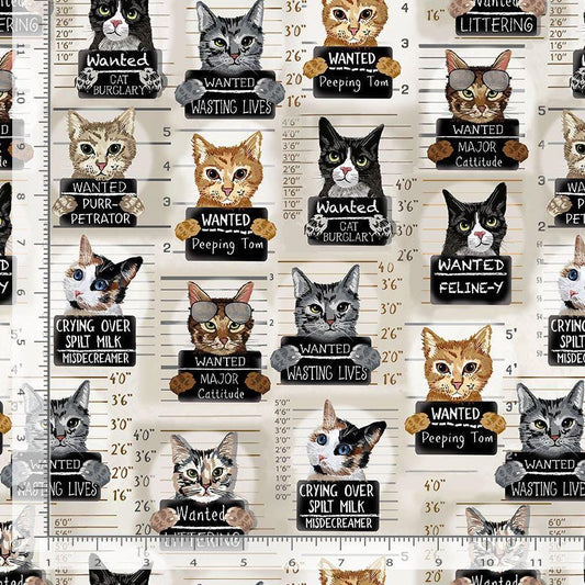 Cat Mugshots Fabric - Timeless Treasures - 100% Cotton - Quirky Cats Collection - Funny Cattitude wanted