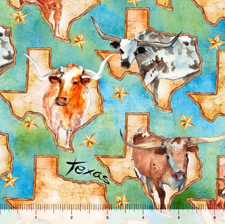 Texas Longhorn Fabric - QT Fabrics - 100% Cotton - State Pride - Cattle - State Large Mammal
