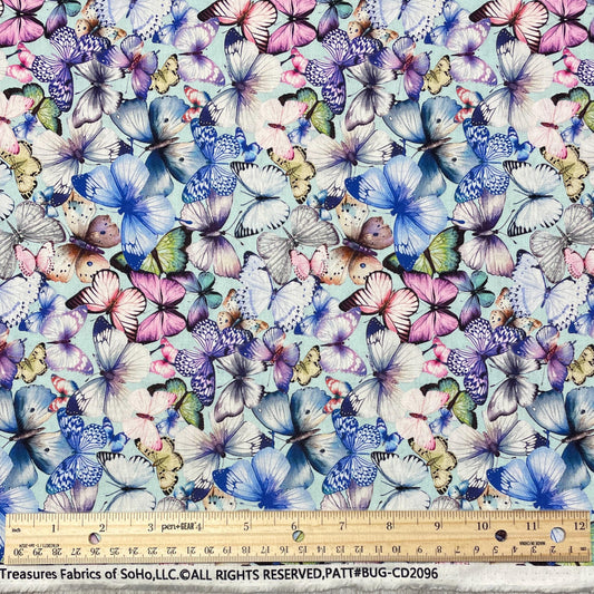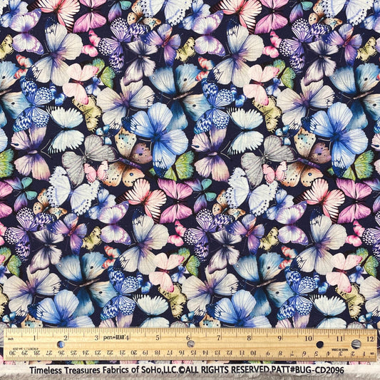 Pretty Butterflies and Text fabric - 100% Cotton - Butterfly Dreams Collection BUG-CD2907 BLUE