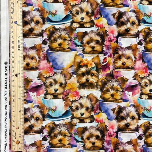Yorkie Teacup fabric - Foust Exclusive Print - 100% Cotton