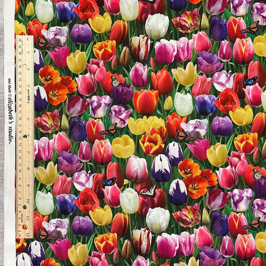 Tulip Fabric - Elizabeth's Studio - 100% cotton - Burst of Color 644-MULTI - Flower Fabric
