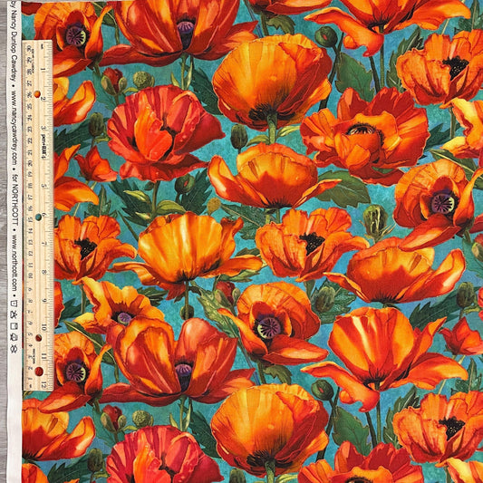 Packed Poppies on Turquoise - Northcott - Charisma Collection