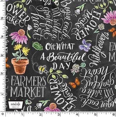 Flower Market Fabric - Michael Miller - Beautiful Day - DDC11823-BLAC-D