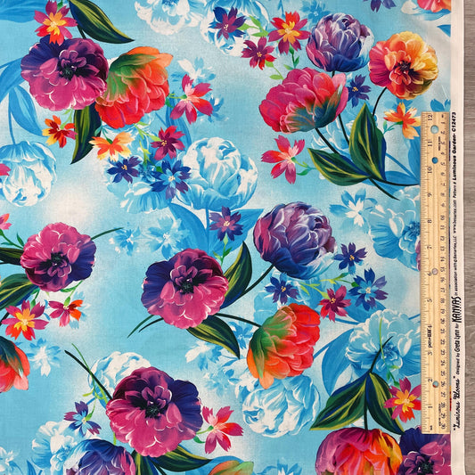 Luminous Garden Light Blue - Benartex Kanvas Studio - Luminous Blooms - 100% Cotton Fabric