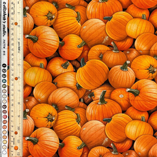Realistic Pumpkin Fabric - Food Festival - 100% Cotton - Elizabeth's Studio - Fall Halloween Thanksgiving Quilting Cotton