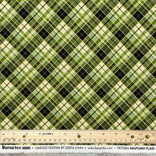 Green Plaid Fabric - Metallic Accents - Harvest Festival