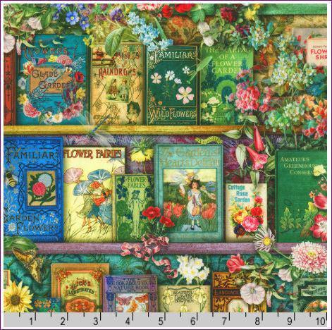 Gardening Book Fabric - Tales from the Garden - Robert Kaufman - 100% Cotton - Reading Classic Literature Poetry - How Does Your Garden Grow