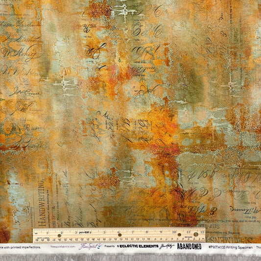 Tim Holtz Writing Specimen - Sienna - 100% Cotton Fabric - FreeSpirit - Eclectic Elements - Abandoned Collection
