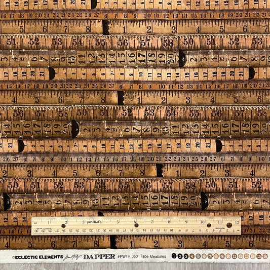 Tim Holtz Tape Measures - 100% Cotton Fabric - FreeSpirit - Eclectic Elements - Foundations Collection