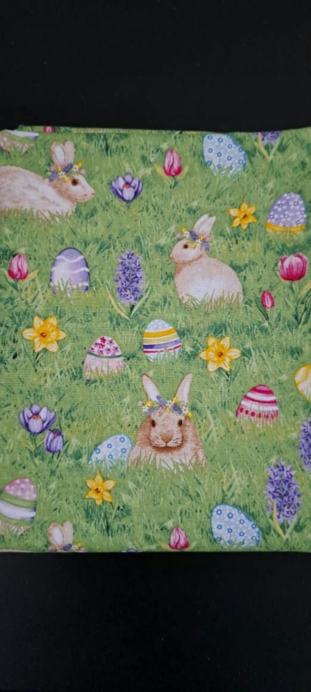 Easter Bunnies and Eggs on Grass - Henry Glass - Hoppy Hunting - 100% Cotton