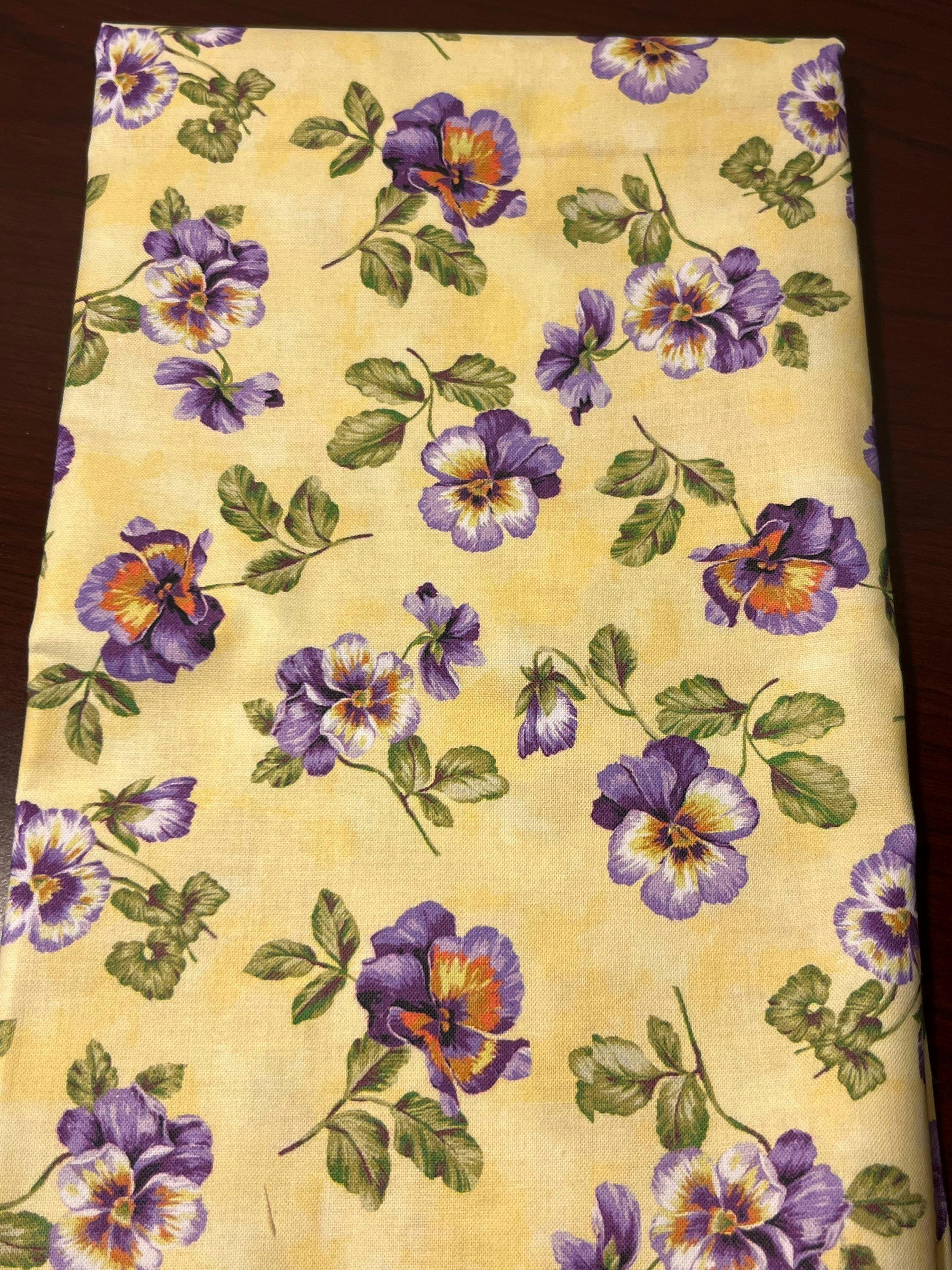 Nice painterly pansy print in great color combos. Prompt shipping and nice packaging.